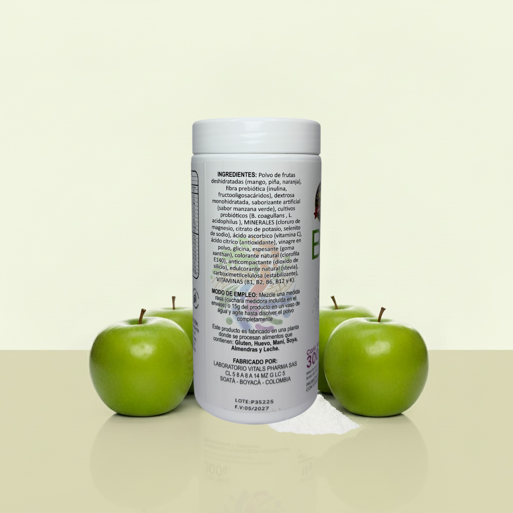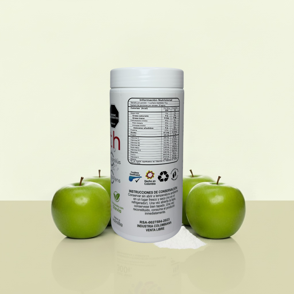 BioProth es un nutracéutico en polvo formulado con fibra prebiótica(INULINA Y FOS), cultivos probióticos(BACILOS COAGULLANS Y LACTOBACILOS ACIDOPHILUS), vitaminas y minerales esenciales, diseñado para apoyar el equilibrio del microbiota intestinal y contribuir al adecuado funcionamiento del sistema digestivo.